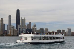 Fine dining and unrivaled skyline views await from the moment you step aboard our Chicago Lunch Cruise. A selection of delectable lunch items will delight your palate while captivating panoramas of Chicago’s iconic architecture are marveled at from our glass-enclosed vessel. Breathtaking views of landmarks such as the Willis Tower, Navy Pier, and the Old Chicago Post Office can be enjoyed from the warm and comfortable interior or the open-air spaces.