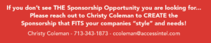 Contact Christy Coleman for more information at ccoleman@accessintel.com or 713-343-1873.